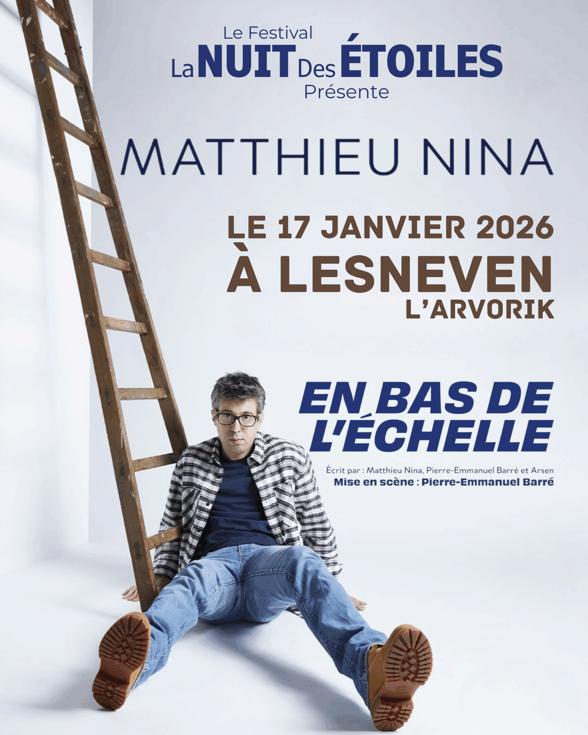 Fidèle à son esprit d’ouverture et à sa volonté d’explorer de nouveaux horizons artistiques, le festival La Nuit Des Étoiles enrichit sa programmation en accueillant désormais des spectacles de comédie. Cette première édition humoristique mettra à l’honneur Matthieu Nina, artiste au parcours inspirant, sur la scène de l’Arvorik à Lesneven, le 17 janvier 2026 à 20h.